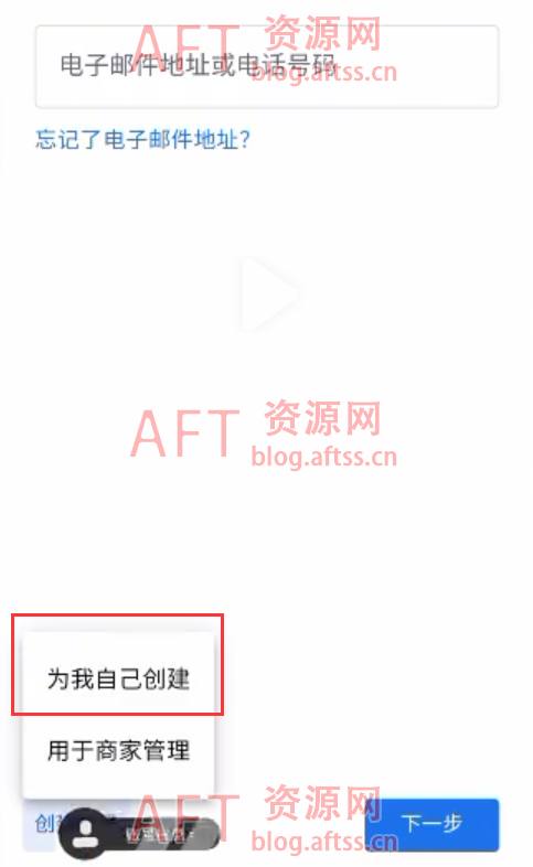 6、返回到了之前那个页面,大家可以看到,左下角有创建账号的按钮(之前是没有的),我们点击它,选择为我自己创建。