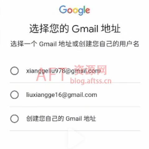 9、选择gmail地址,我们选一个系统推荐的即可,记得截屏哦,这个是我们登录的谷歌账号,选好点下一步。