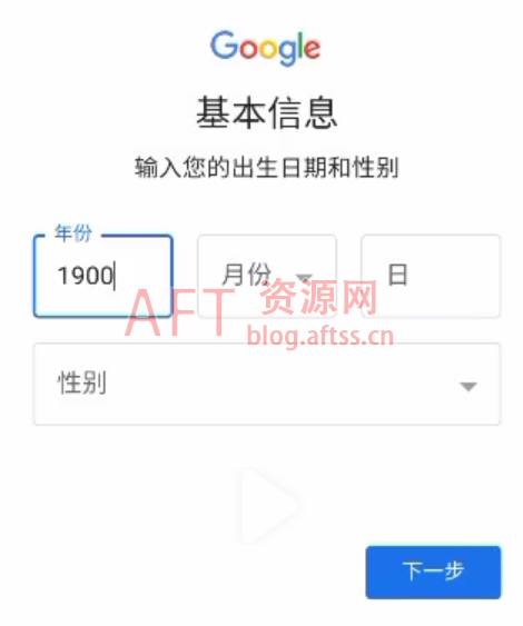 8、填写出生日期和性别,这里要注意,我们一定要选择18岁以上的年龄,成年即可,点下一步。