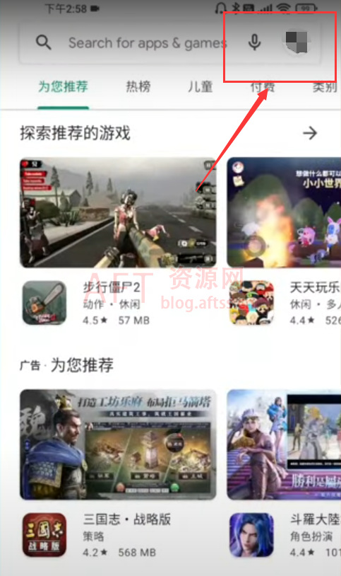 2、打开谷歌商店,点击右上角的头像按钮(如果还没登录谷歌账号的,先登录),进入到个人中心。