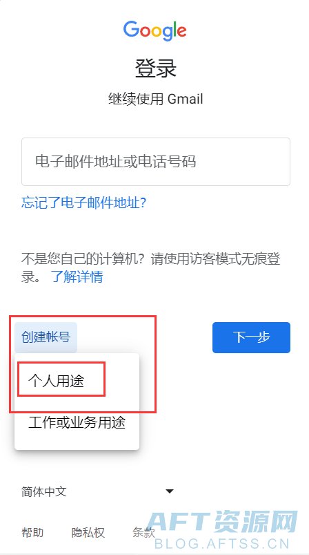 1、我们使用浏览器打开谷歌邮箱官网(gmail.google.com),进入谷歌邮箱的登录主页,我们点击左下方的创建账号按钮,选择个人用途。