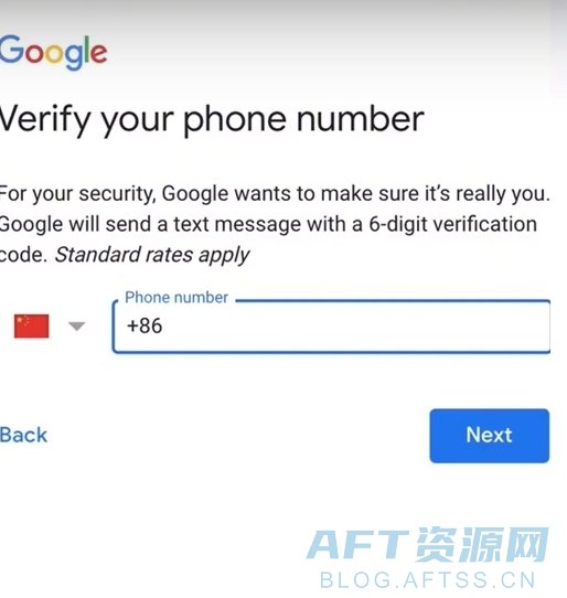 5、这个时候,会跳转到手机号码验证页面,我们选择中国+86,填写自己的手机号,点击Next。如果顺利,你会进入下一步,填写验证码。如果你的加速器美国IP质量不行,这里就会提示你“此电话号码无法用于验证”。遇到这个提示,建议,切换一个优质美国IP,在操作。