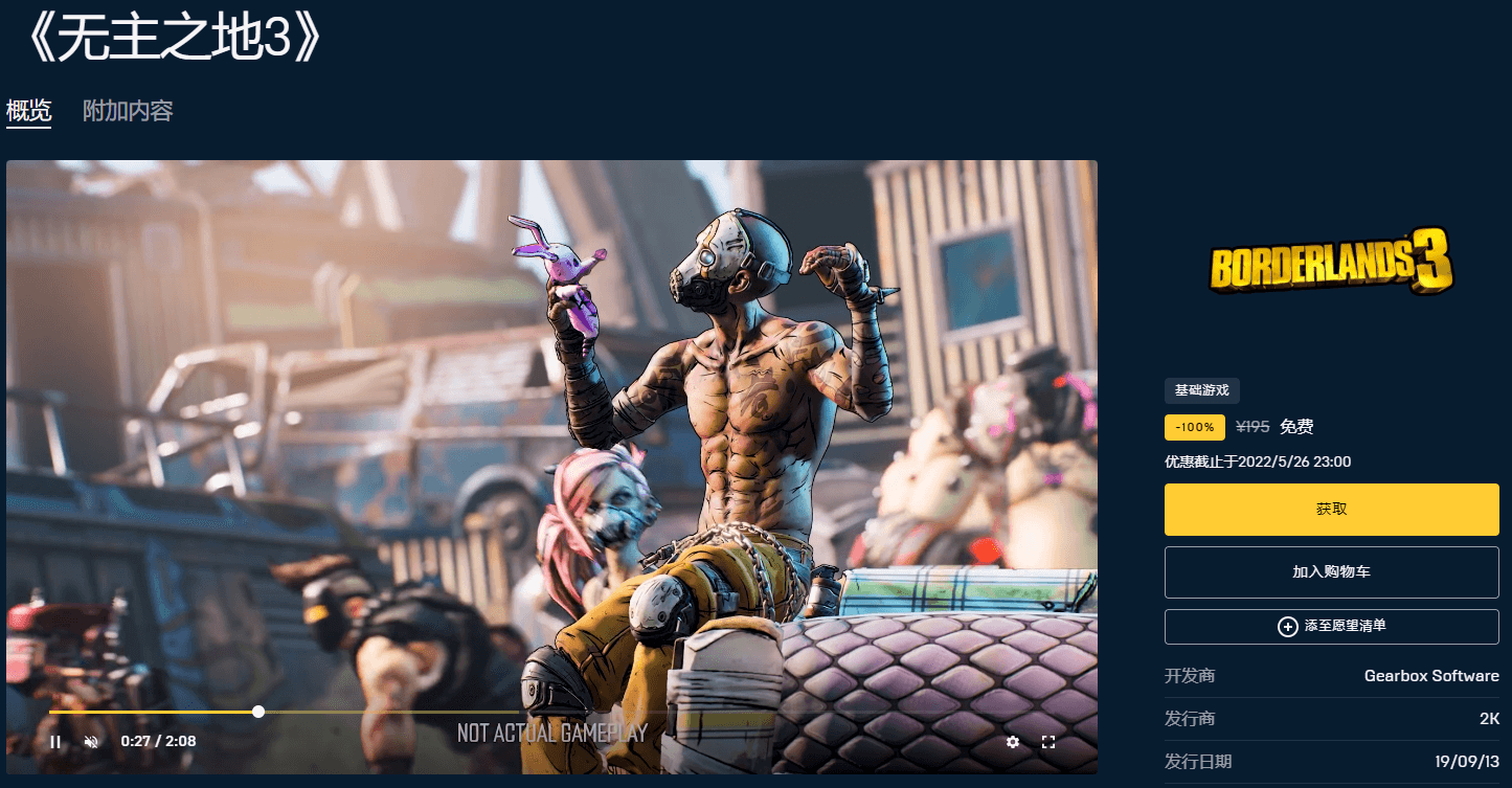 领取地址:https://store.epicgames.com/zh-CN/p/borderlands-3