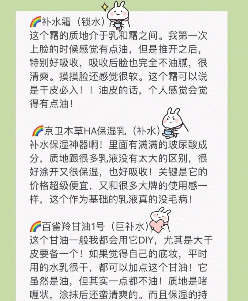 ??总的来说现在的国货做的真的越来越好了!而且很多国货的成分和大牌也没有太大的区别,护肤不用盲目跟风国外的产品,适合自己才是最好的!