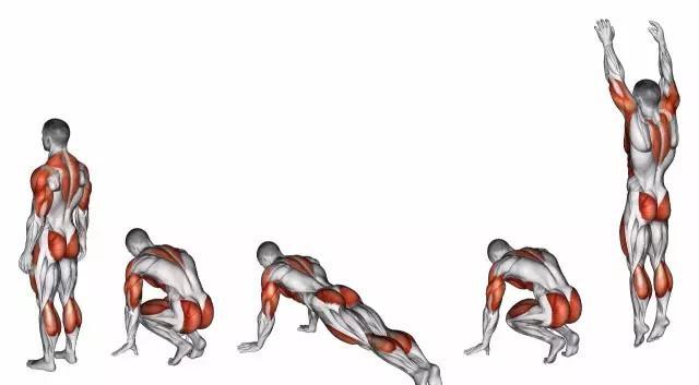 徒手训练中的波比跳动作,能够训练到身体大部分的肌群: