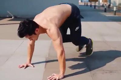 下边这位帅气的小哥,经过一个月的波比训练后,不但胸肌的形状更加分明,腹肌的形状、手臂线条都上升了一个台阶,整个人的气质发生了飞跃。