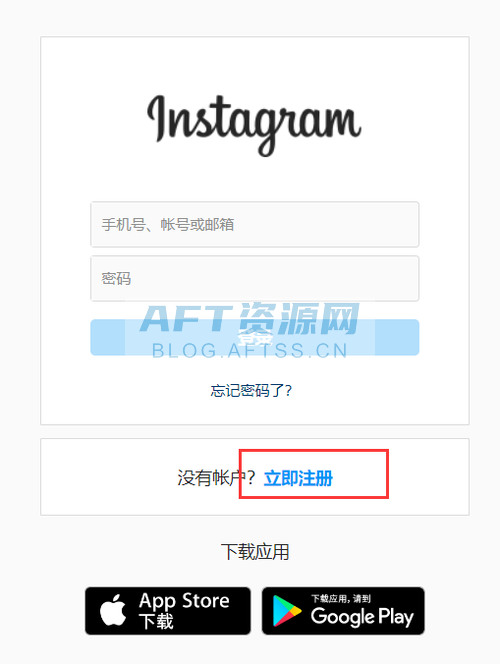 2、点击instagram主页的注册按钮,进入注册界面。