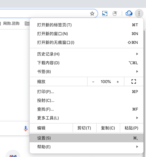 首先,打开谷歌浏览器,找到“设置”入口: